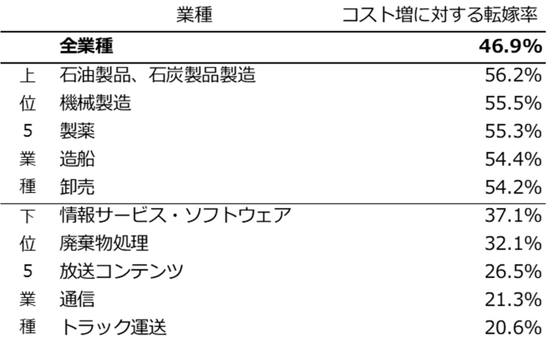 コスト増に対する価格転嫁率は46.9%