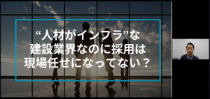 株式会社ブリッジワンの上村会長より、建設業界における人材獲得競争の激化とそれに対応する経営戦略と採用設計の始め方についてご説明いただきました。