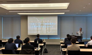セミナーでは、東京都の人材確保施策のほか、建設業界における人材戦略について、人的資本の考え方から具体的な高度外国人材の活用方法など、企業が持続的な成長を実現するために必要な観点を説明しました。