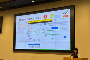 CCイノベーションコンサルタント椿優里より、kintoneの基本機能や活用事例を紹介するとともに、参加者の方に顧客管理・案件管理テンプレートを実際に操作していただきながらkintoneを利用した業務改善の可能性を体感していただきました
